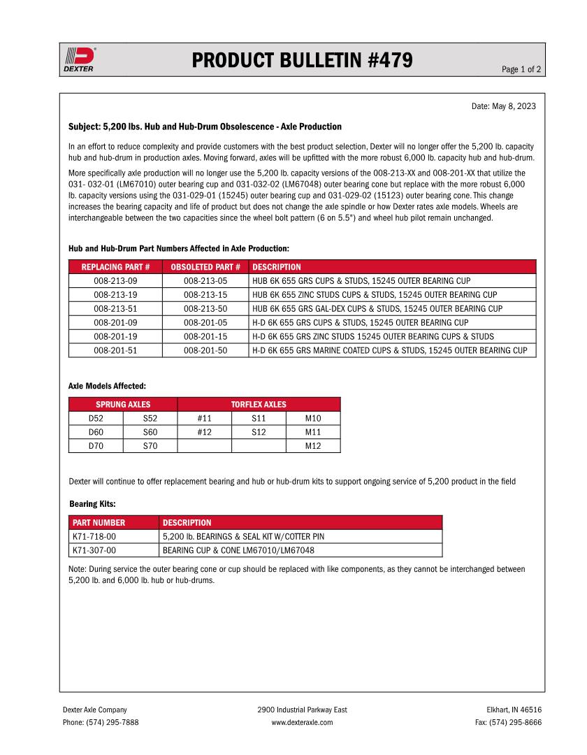 479: 5,200 lbs. Hub and Hub-Drum Obsolescence - Axle Production
