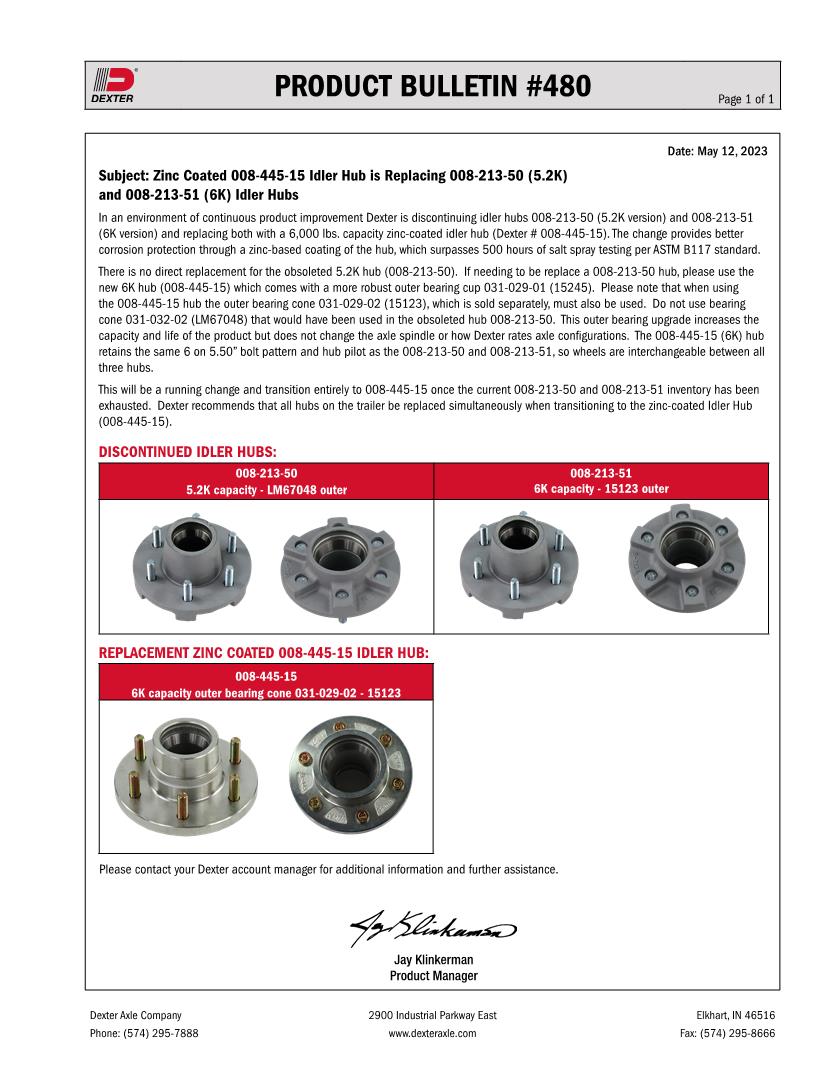480: Zinc Coated 008-445-15 Idler Hub is Replacing 008-213-50 (5.2K) and 008-213-51 (6K) Idler Hubs
