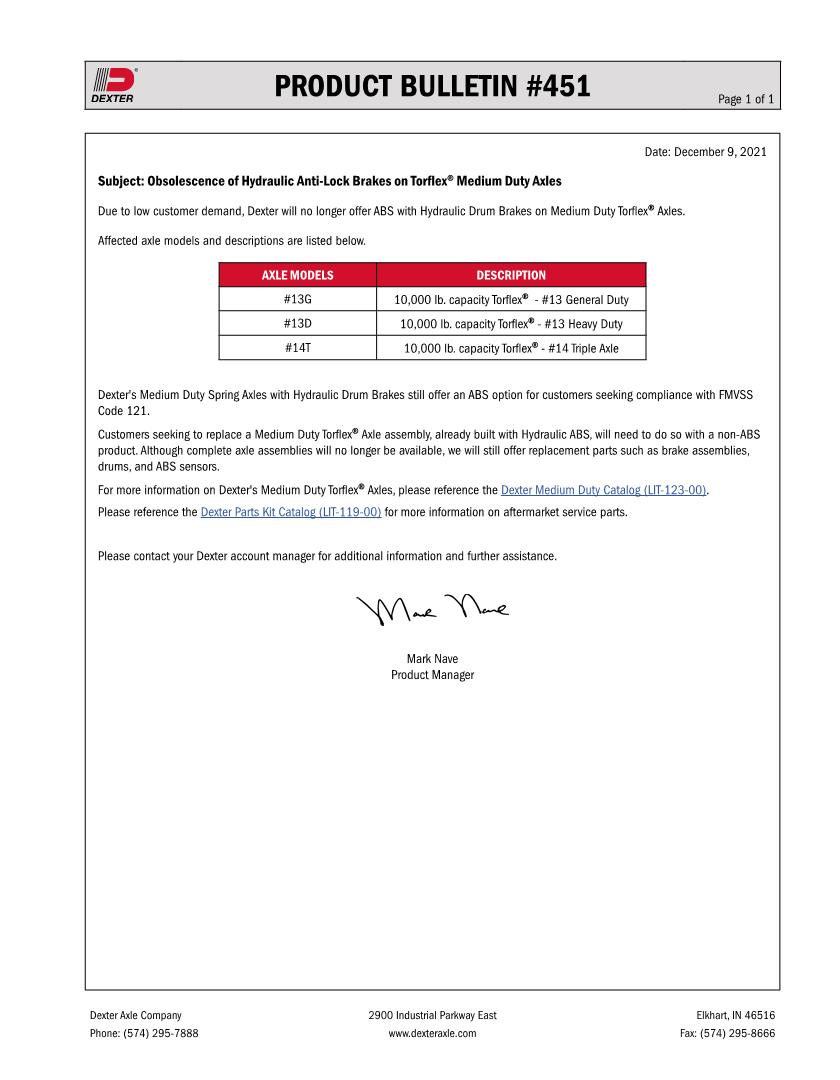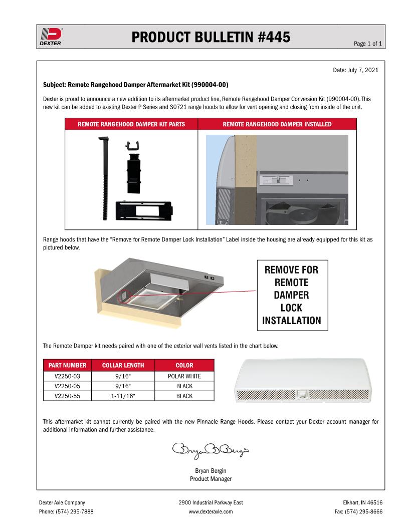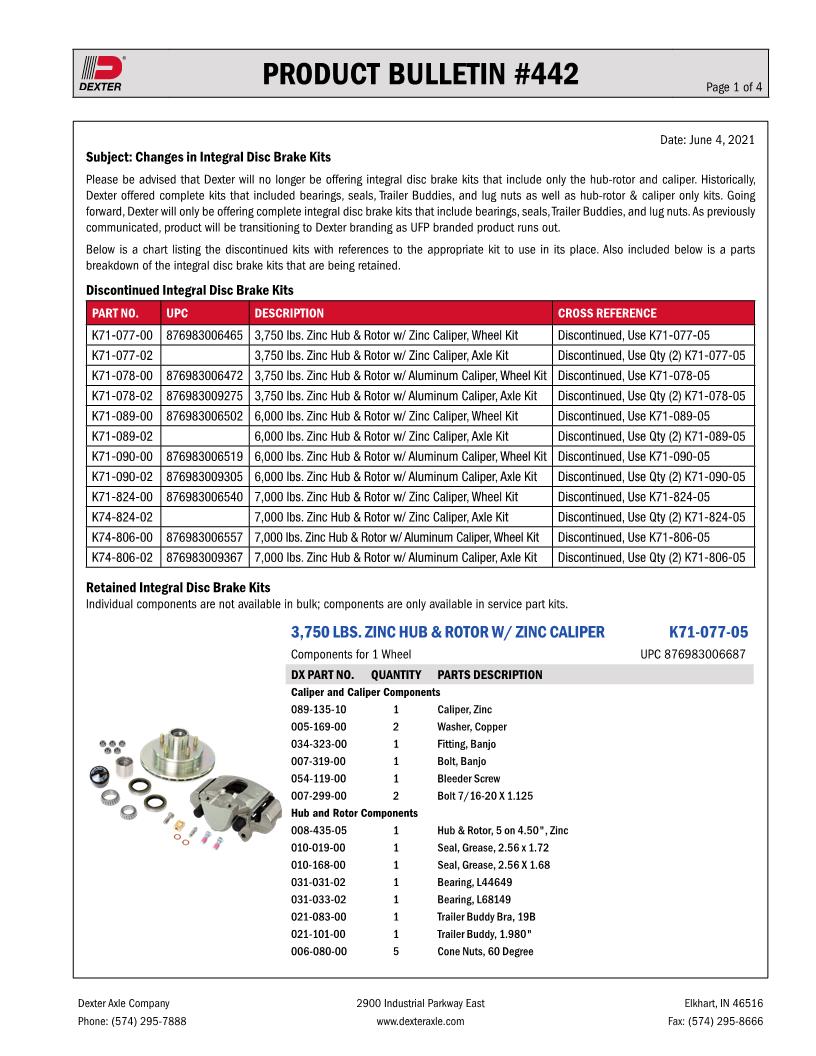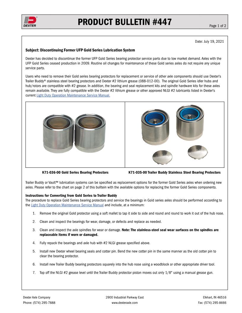 447: Discontinuing Former UFP Gold Series Lubrication System