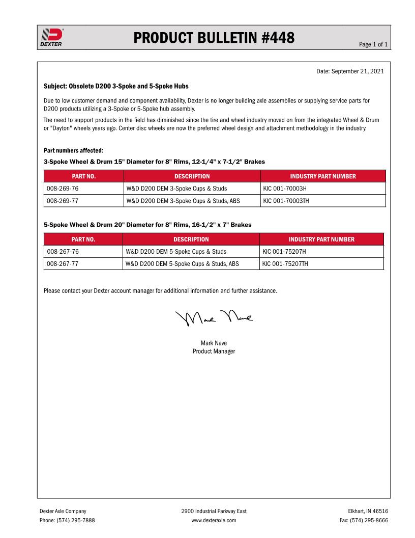 448: D200 3-Spoke & 5-Spoke Obsolescence