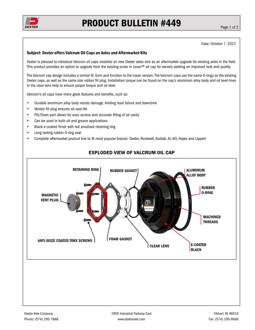 449: Valcrum Oil Caps on Axles and Aftermarket Kits