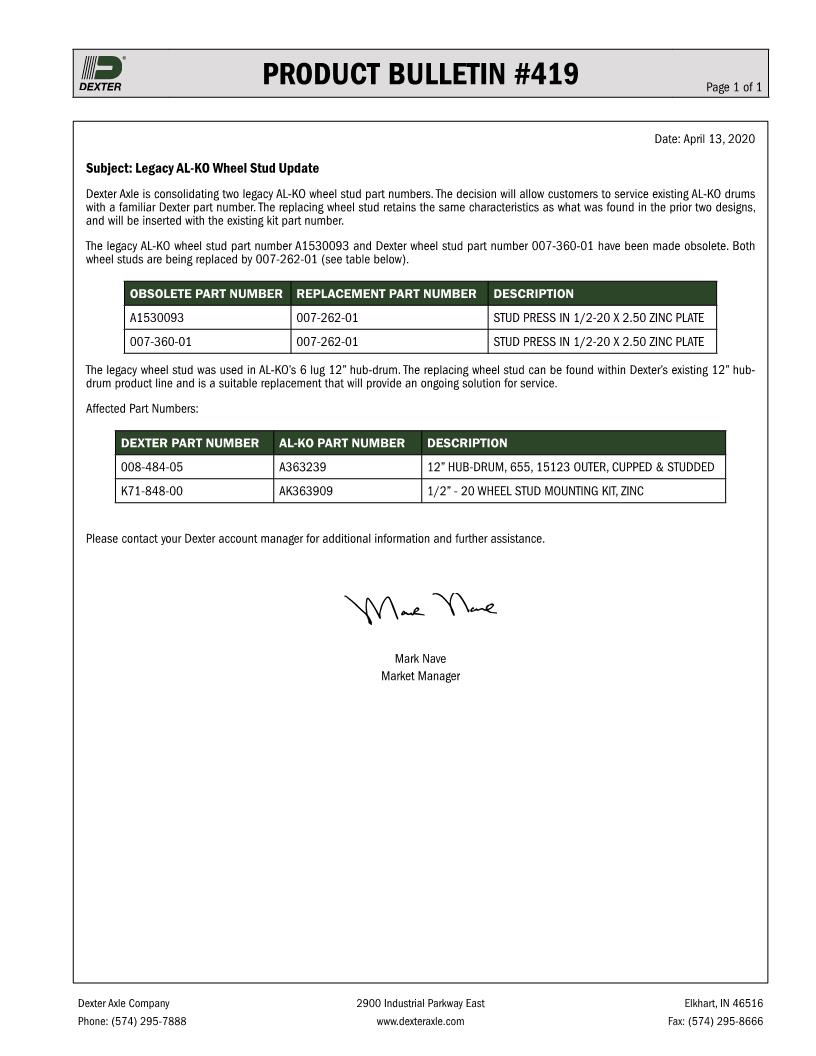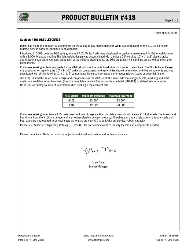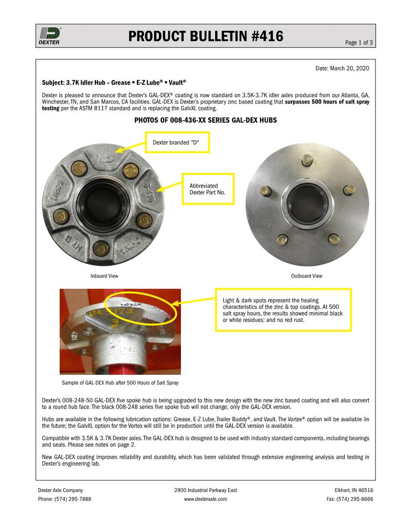 414: Addition of Remote Bleeder Inlet Line to Dexter 6,000 lbs. - 8,000 lbs. Disc Brakes