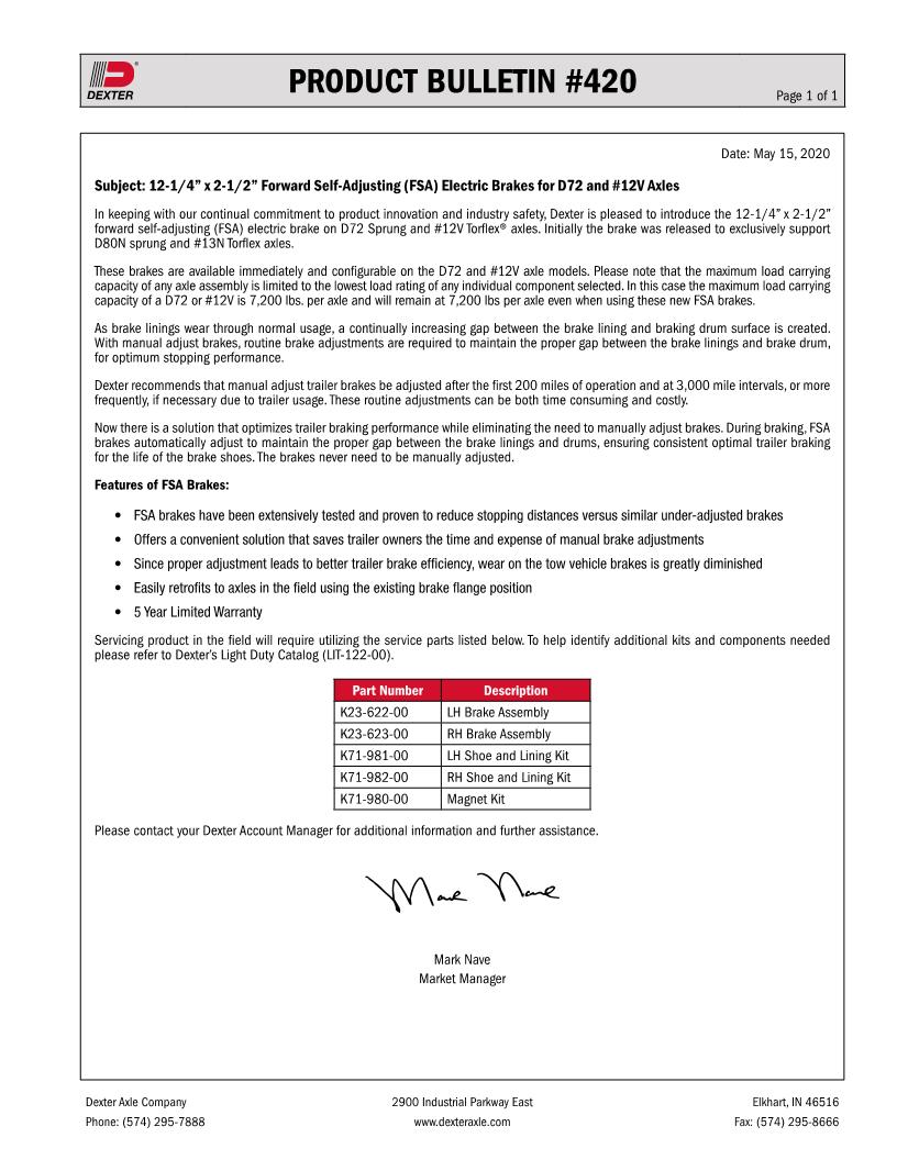 410: 12 x 2 Electric Brakes to Utilize Dual Retractor Spring